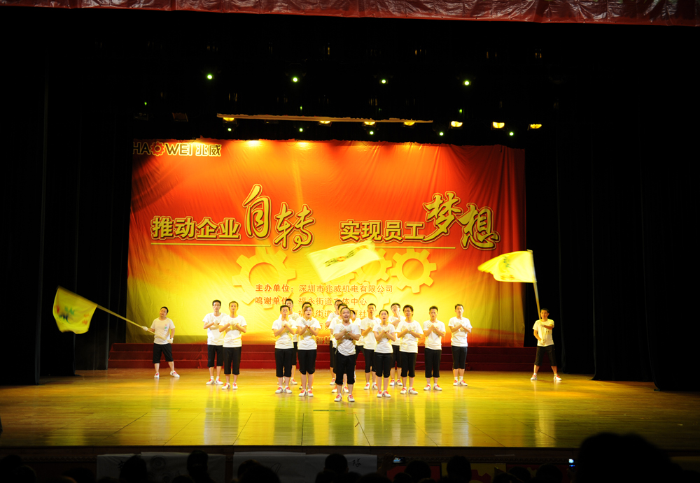 金秋十月的后一日,為了增強員工的凝聚力與向心力,調動(dòng)員工積性,熔煉團隊精神,6月23日早在深圳市寶安區福永鎮萬(wàn)福廣場(chǎng)大劇院開(kāi)展 “推動(dòng)企業(yè)自轉 提升員工夢(mèng)想”為主題的大型企業(yè)文化風(fēng)采展示活動(dòng)。
