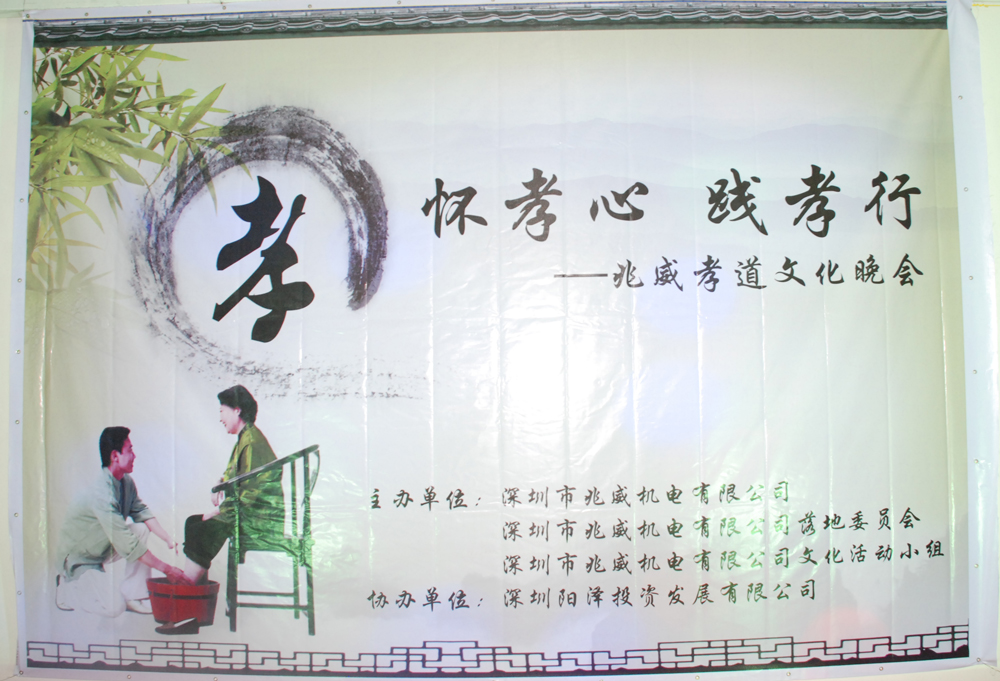 傳揚中華民族傳統是每個(gè)公民每個(gè)企業(yè)都不能推卸的責任,傳承孝文化是迫不及待的。對于企業(yè)說(shuō),把孝做為企業(yè)文化是必要的社會(huì )責任。兆威機電自成立來(lái),一直把“孝道”作為企業(yè)文化,并且把孝引入每個(gè)員工的心里,提自身素質(zhì)。孝順父母自古以來(lái)都是中華民族的傳統美德,盡孝不僅要有心,更要化作實(shí)際行動(dòng)。