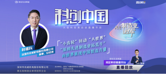 9月16日,由深圳廣電集團財經(jīng)生活頻道、深圳工業(yè)總會(huì )主辦,深圳市工業(yè)和信息化局指導的“我是制造業(yè)冠軍”大型科創(chuàng )類(lèi)訪(fǎng)談直播推出第四期,本期是第五批國家制造業(yè)單項冠軍產(chǎn)品企業(yè)、深圳工業(yè)總會(huì )副會(huì )長(cháng)單位——深圳市兆威機電機電股份有限公司。